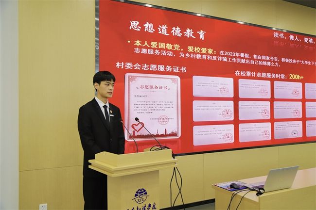 在个人陈述环节,参选者分别从思想品德、学业成绩、科技创新、社会实践等多个方面进行汇报,充分展示了自己在校期间各方面的情况。千帆竞渡,百舸争流。参选者各怀其志、各有所长,在学业水平、学科竞赛、社会实践、第二课堂等多个方面均取得了良好成绩。五分钟的展示,浓缩了他们求学漫漫路中的辛勤付出和累累硕果,凝聚的是他们日日夜夜的勤奋刻苦和坚定信念。