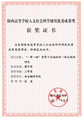 受资助、获奖 | 1. 2020年12月,荣获“西安翻译学院第二届人文社科优秀成果奖一等奖”; 2. 2021年10月,荣获陕西省教育厅评选的“陕西高等学校人文社科优秀成果三等奖”。 |