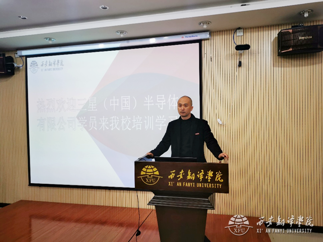 仪式上,刘远征向参训人员致欢迎词,并介绍了我校师资力量、学术荣誉等相关情况。他表示,西安翻译学院作为本次三星(中国)半导体有限公司韩语社外培训承办单位,将用优秀的师资、良好的软硬件设备,为全体学员提供良好的教育教学服务。