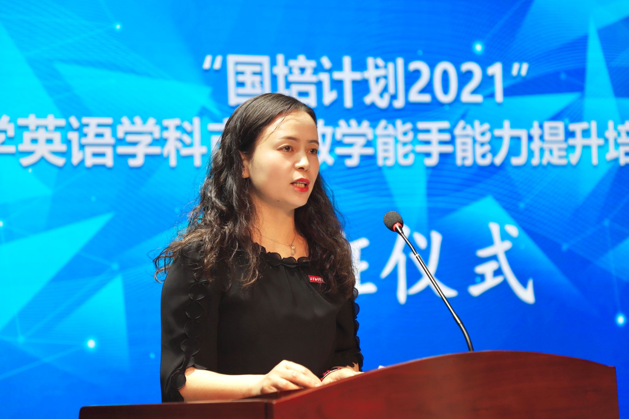 西安市长安区子午街道中心学校田荣老师作为培训学员代表进行发言。她对西安翻译学院优美的自然环境和良好的学习环境、便利的生活条件表示赞叹,并表示将倍加珍惜这次宝贵的学习机会,自觉遵守各项规章制度和工作纪律,团结协作,以饱满的热情、积极的态度投入到学习中去,认真完成各项学习任务,学有所成。