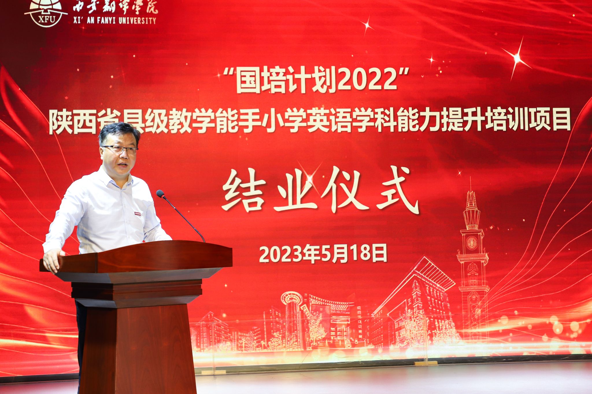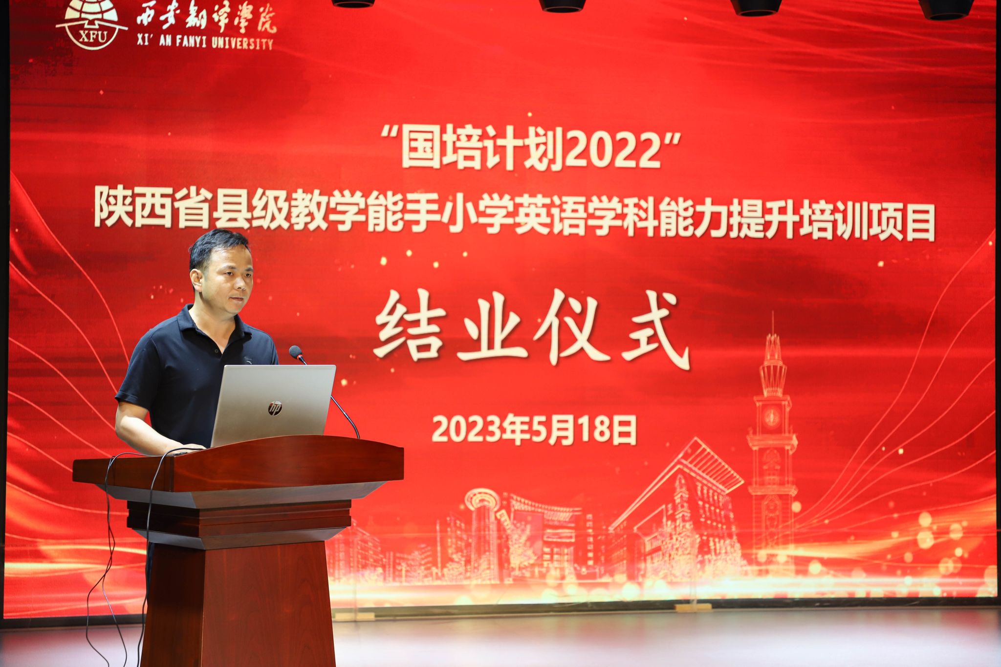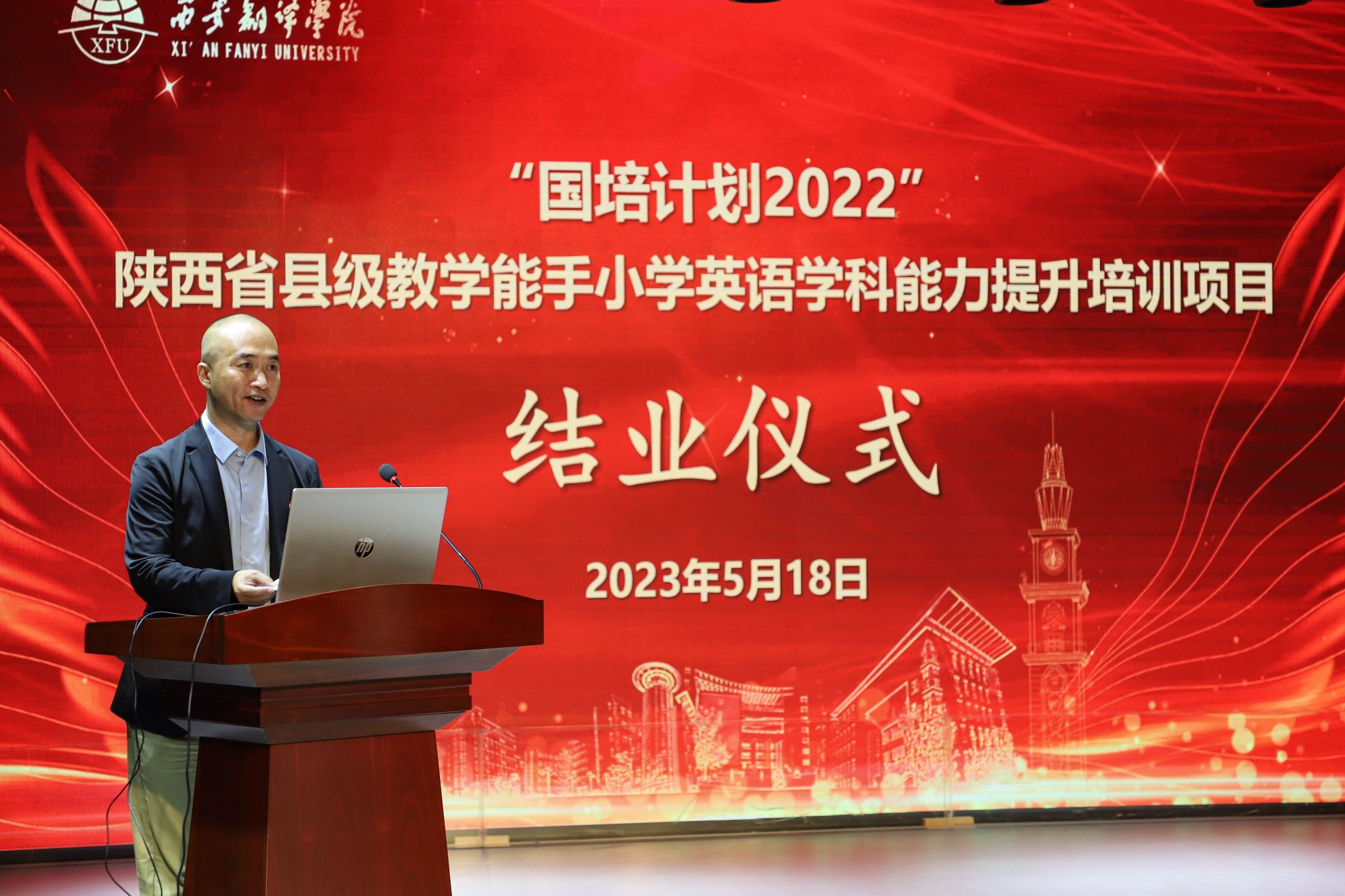 5月18日上午,“国培计划”2022陕西省县级教学能手小学英语学科能力提升培训项目结业仪式在西译举行。党委副书记、副校长郭炜,英文学院项目组指导专家闫福祥应邀出席。继续教育学院副院长刘远征主持结业仪式。