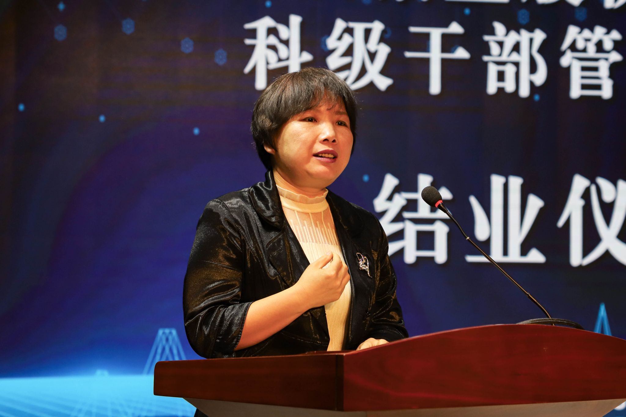 宋月云等五名优秀学员代表上台汇报培训学习成果。他们均表示,在此次培训中,教师丰富的知识储备和完备的理论体系,令大家受益匪浅,学员们在培训中通过学习如何带领团队高效完成工作任务、提升创新思维观念的同时,及时总结、不断改善,实现了团队和个人的双赢。