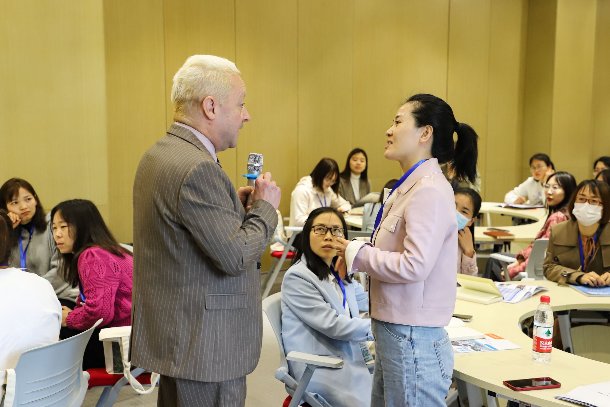 开班仪式结束后,外籍教师Dirk与学员们进行口语交流,学员们踊跃参与,讨论气氛轻松融洽,拉开了本次培训的序幕。